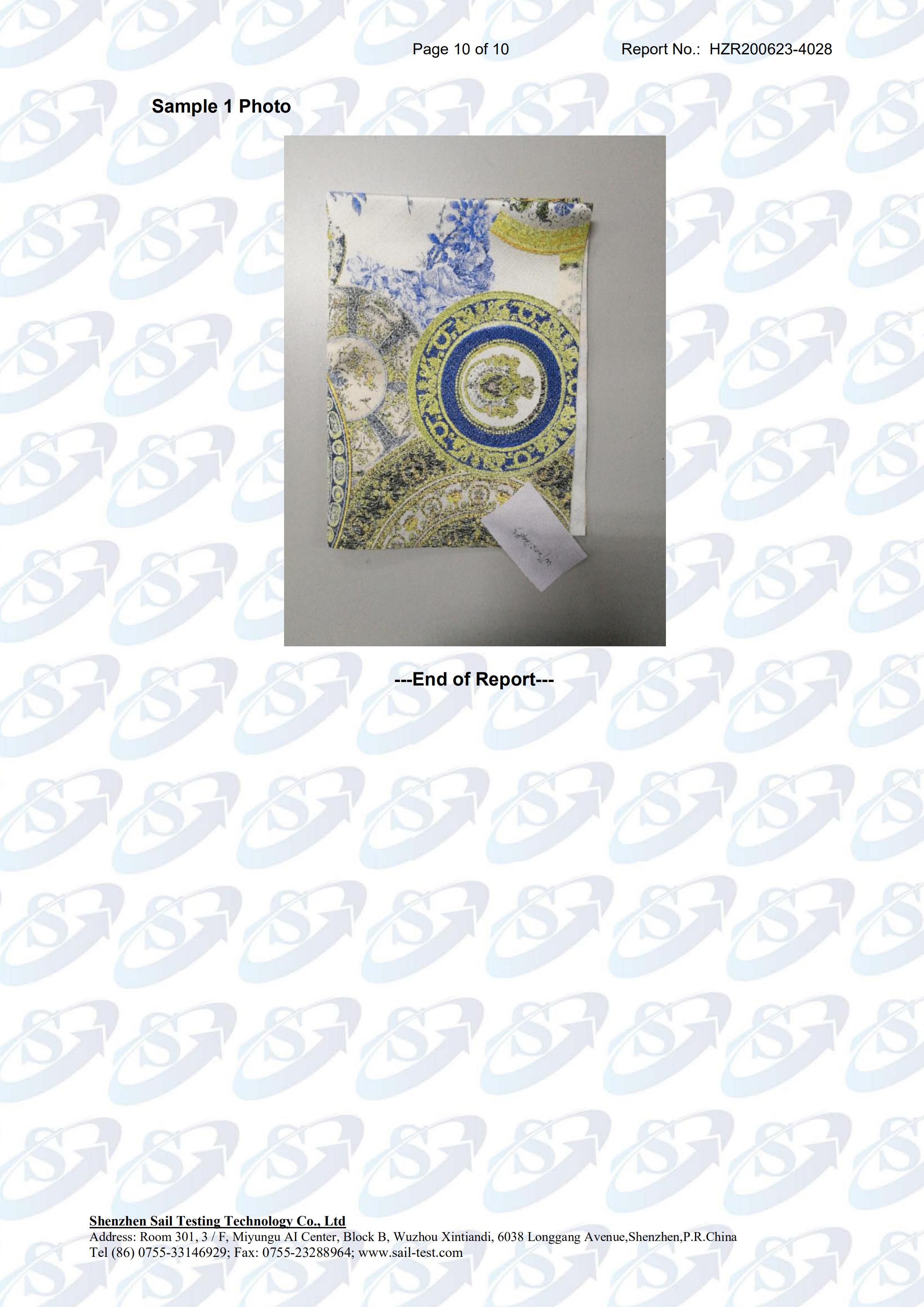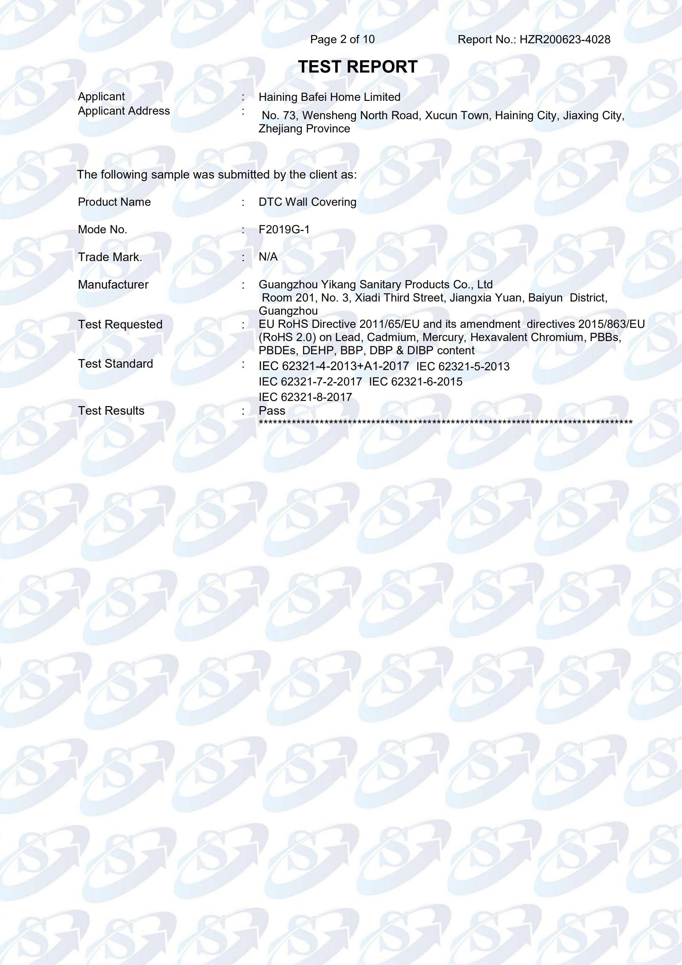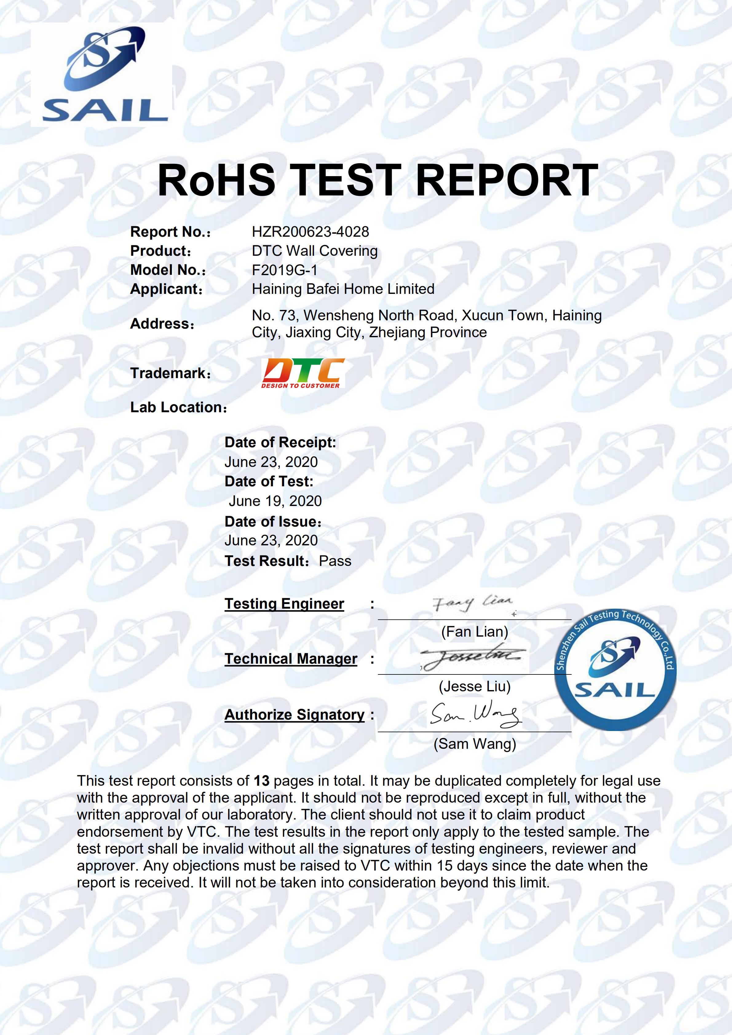 DTC墙布欧盟出口质检报告